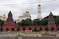 14h30 Entrée au kremlin. Un peu déçus de l'intérieur 4 ou 5 églises et des bâtiments modernes aux cotes de plus anciens. Des flics partout pour nous interdire de sortir des clous. Un coup de sifflet et le voyageur qui a le pied en zone interdite se remet vite dans le droit chemin.