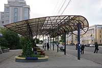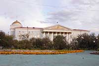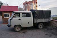 20h01 Christian va prendre des photos et faire une reconnaissance pour trouver où manger pendant que Jeannot nettoie le filtre à air du véhicule. La ville est très russe, dans le sens où la place centrale est immense entourée d'énorme bâtiments imposants, beaucoup de fleurs. C'est beau car c'est impressionnant.