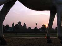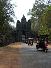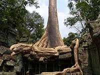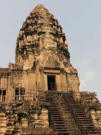 Angkor a été le centre politique et religieux du grand empire Khmer de 802 à 1432. Les constructions en bois destinées aux hommes ont disparu, restent les temples montagnes édifiés en l'honneur des dieux.Les dieux Shiva et Vishnou (religion hindouiste) ont d'abord été vénérés puis à partir du 10e siècle, le bouddhisme devint la religion dominante du pays.